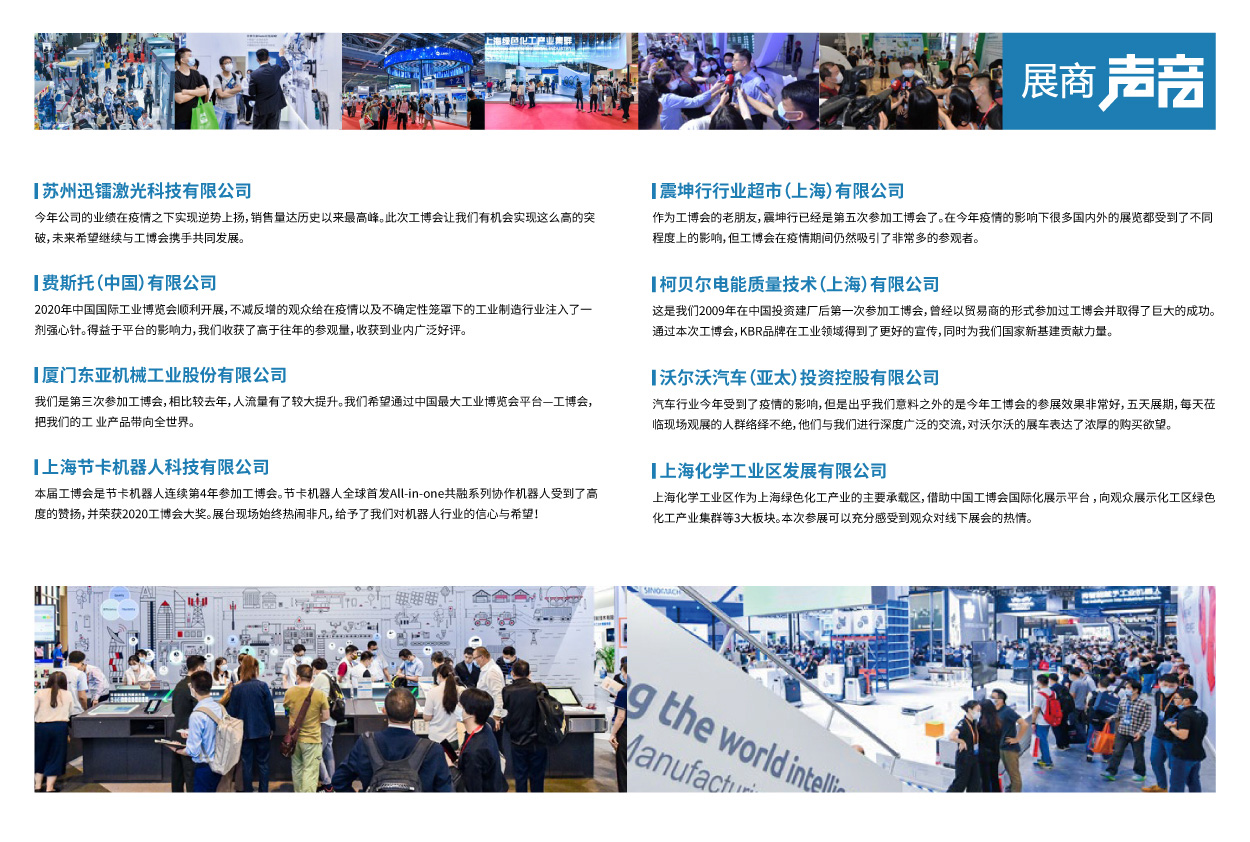 第二十三届中国国际工业博览会将于2022年9月26日-30日在国家会展中心(上海)举行,设10大专业展,展会面积30万平方米,超过2600家展商参展,同期精彩活动50余场,预计逾18万中外专业观众参观。