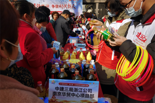 3月2日,在南京市工人新村社区,中建三局三公司南京华贸项目“爱心义卖”活动如火如荼地进行着。