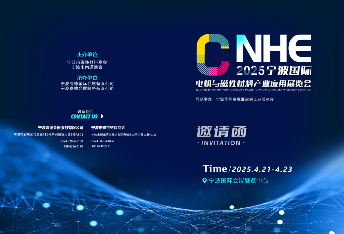 “宁”心聚力驱动未来!宁波地处长三角洲南翼,拥有得天独后的地理优势、宁波舟山港更是跻身世界顶级港口之列、成为全球货物吞吐量最大的港口之一。智能创新:宁波是全国首个制造强国战略试点示范城市,致力于打造”全球制造创新之都”新坐标。产业集群:宁波电机产业依托优越的港口条件和完善的产业集群,已建成汽车、家电、电机、磁材、模具、轴承等电机全产业链体系,已成为中国东部沿海地区最重要的电机、磁材产业基地。技术研发:随着电机产业智能创新不断升级,“中国科学院宁波材料技术与工程研究所”在科技创新方面取得了显著成就。通过引进先进技术、加大研发投入、培育创新人才等设施,不断提升自主创新能力,宁波市引领着电机、磁材行业的技术进步和发展方向。