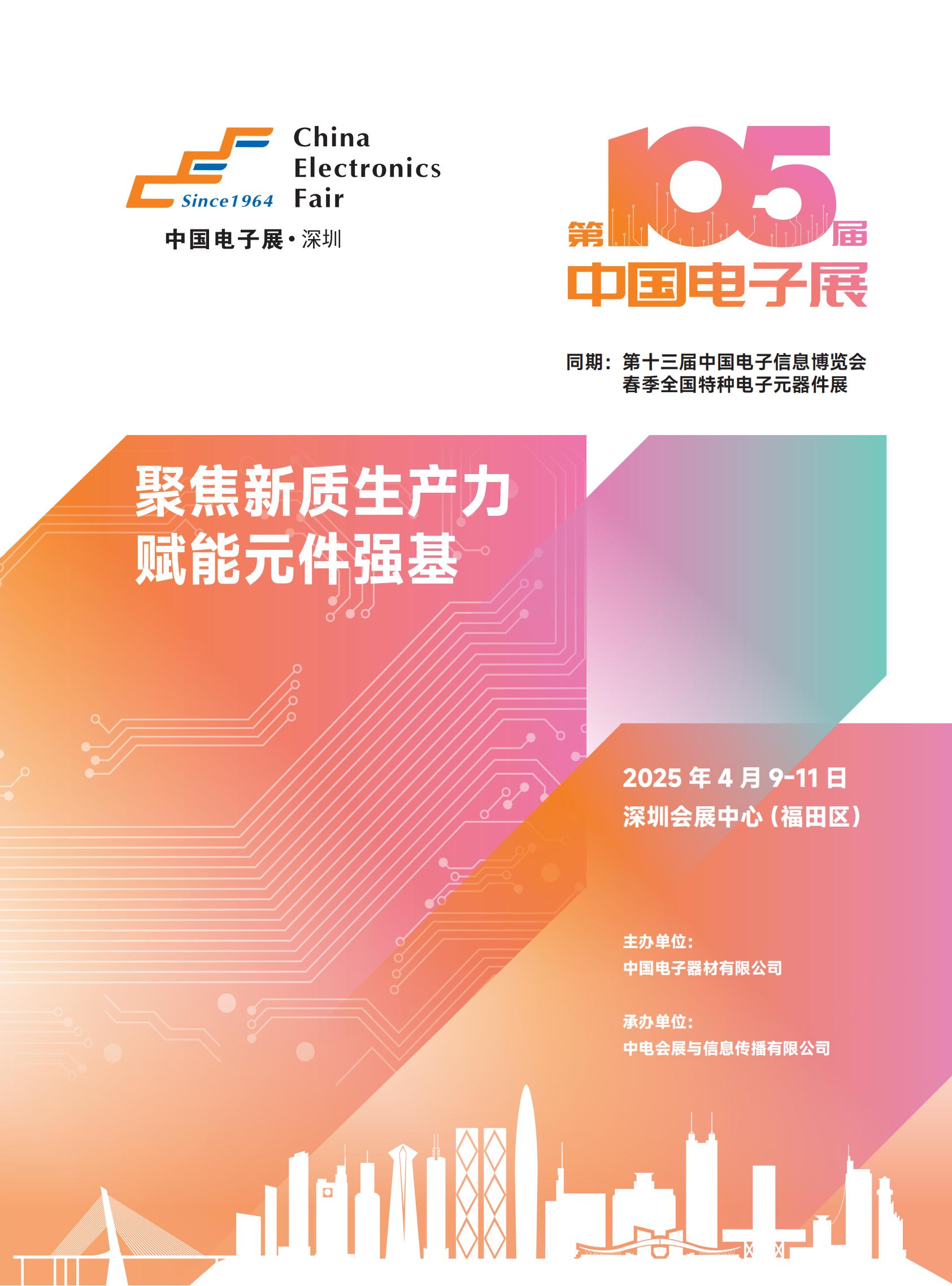 亚洲极具规模和影响力的综合性电子信息博览会由工业和信息化部与深圳市人民政府联手打造的国家级电子信息全产业链展示平台中国电子信息博览会(CITE)将2025年4月9日-11日在深圳会展中心举行 权威的综合性专业电子展。电子展(CEF)始于1964年,是中国历史最悠久、最权威的电子行业展会。中国电子展以领先的基础电子技术,促进中国电子产业自主创新,与中国电子产业共同成长。 · 高度的国际影响。电子展是亚洲电子展览联盟(AEECC)五大成员之一,与日本电子展(CEATEC JAPAN)、韩国电子展(KES)、台湾电子展(Taitronics)、香港电子展(HK Electronics Fair)并称为亚洲五大电子展。成员之间的相互协作极大地提高了CEF在国际上的影响力。