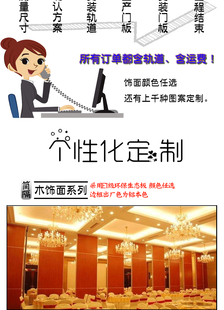 宴会厅移动隔断把大空间分割成小空间,降低能耗 上门安装