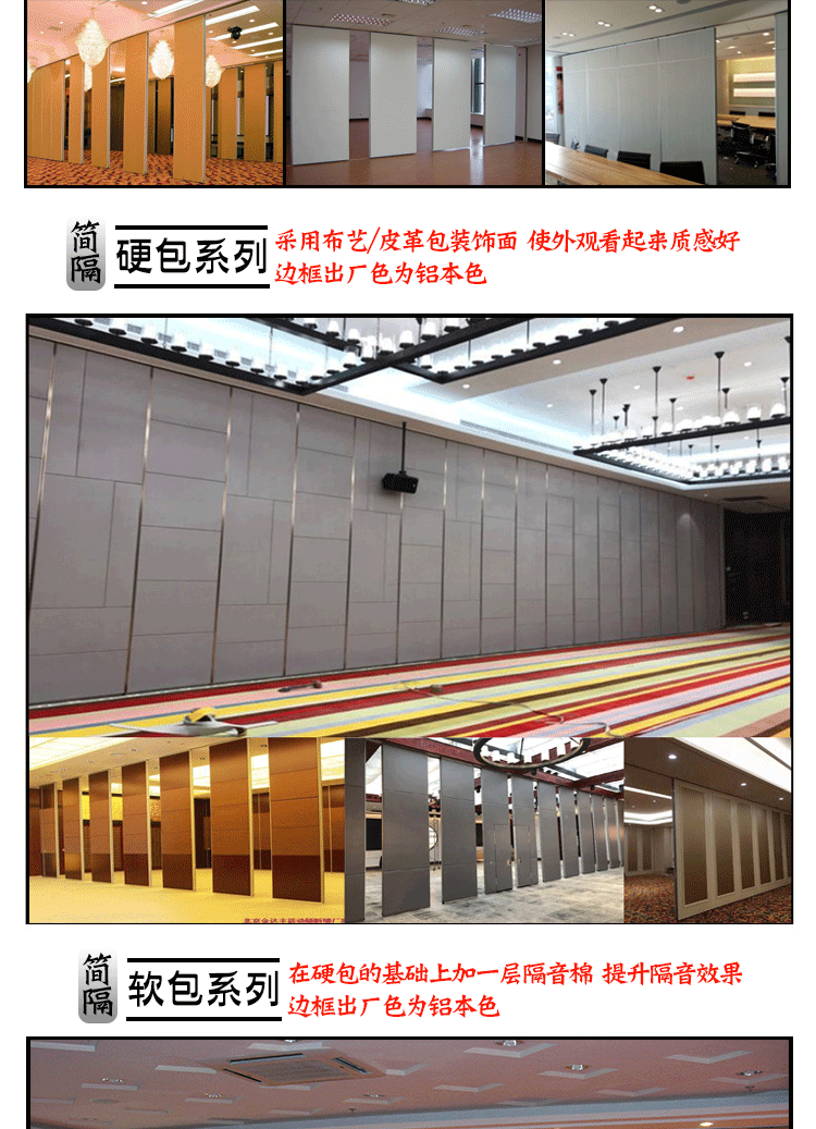酒店活动隔断墙大小灵活、随时可变,悬挂式移动折叠隔断墙